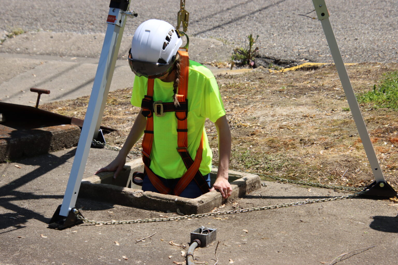 A fall protection harness should fit close to the body without limiting movement. Ensure you can slide your fingers below your leg straps to encourage circulation.