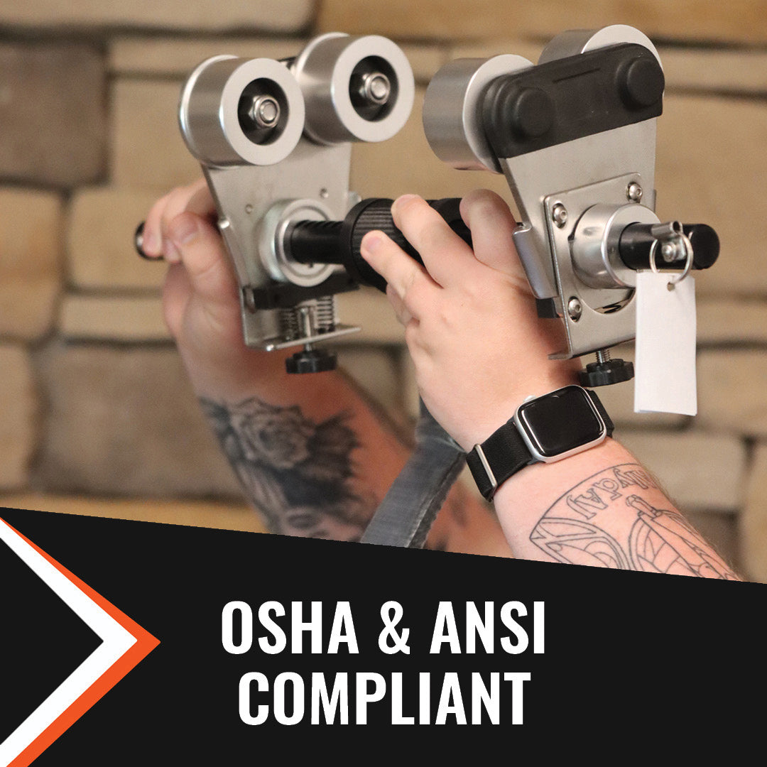 The beam trolley is versatile, accommodating a wide range of I-Beam sizes from 3" to 10" in width and 1/4” to 7/8” in thickness. This adjustability makes it a perfect solution for various work environments and applications, supporting one user with a weight range of 130-310 lbs. Whether used overhead or at foot level, its design ensures maximum safety and compliance with stringent ANSI and OSHA standards.