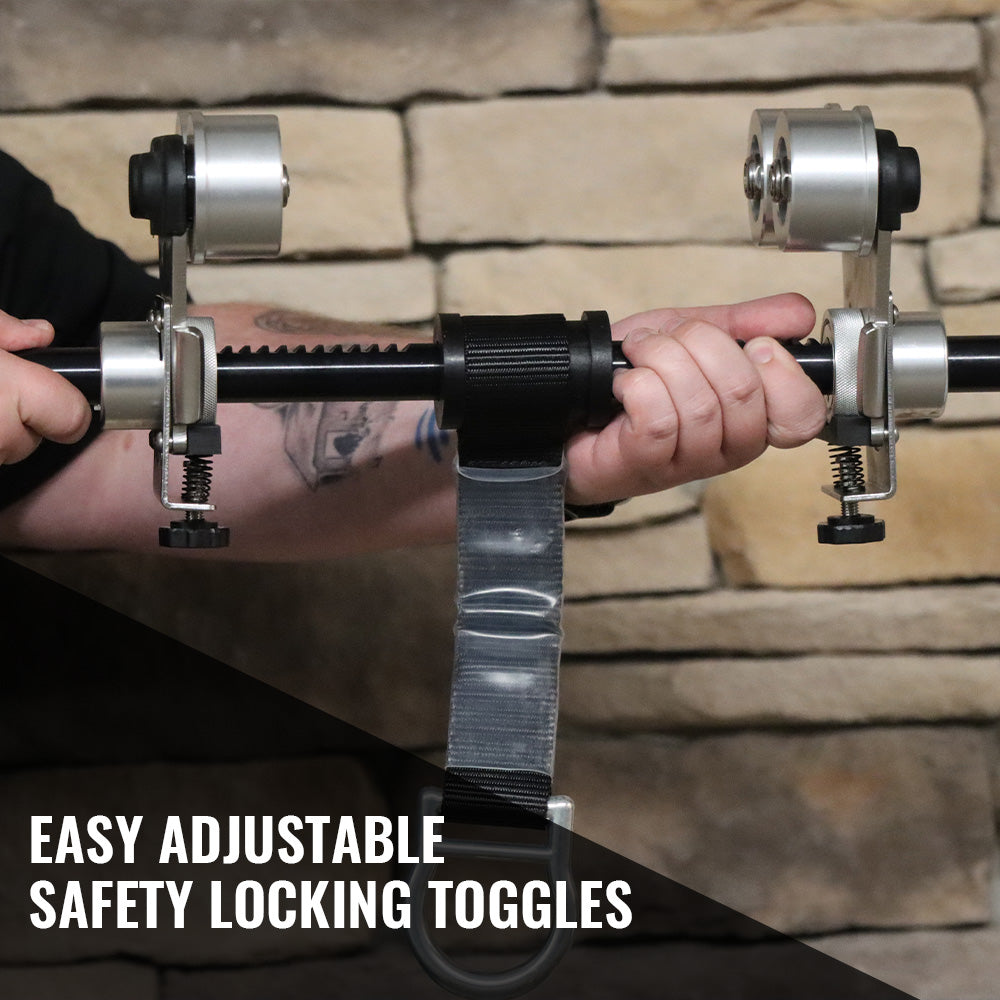 - Release the toggle plate and pull back on the rollers to ensure the ratchet teeth are fully seated in the nearest notches.