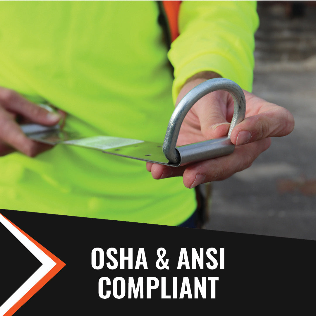 The tensile breaking strength of this rugged stainless steel roof anchor is a minimum of 5,000 lbs. (22.2 kN) in ANSI testing. Even with such powerful capabilities, it weighs just under 1 lb. and features a sleek, discreet appearance. Its unique pre-drilled hole layout also helps minimize truss damage that could occur during installation. Fasteners (nails) are included, too, so you can be confident in the installation.
