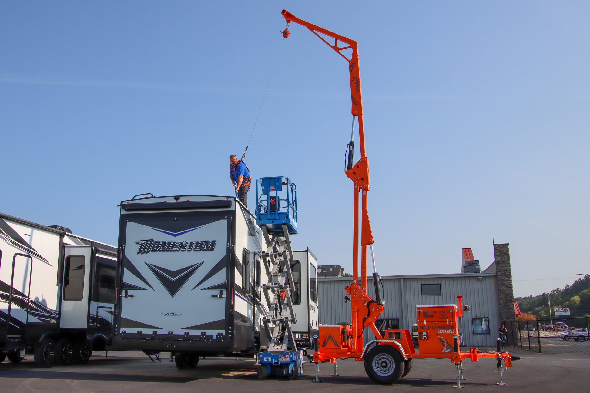 The XSERIES X1240 by Malta Dynamics is a portable fall arrest and mobile anchor system designed for construction and industrial environments, supporting up to two workers at 310 lbs. each. Its overhead anchor points deliver reliable fall arrest and restraint capabilities without permanent installation.