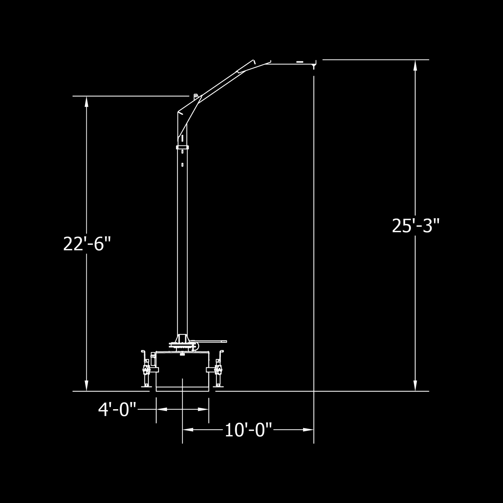 - Height: 25’ from ground level, providing ample clearance for high-rise buildings and space entry operations.