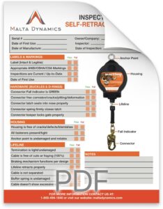 Please remember to inspect your SRL before each use. If it does not pass inspection, please call Malta Dynamics immediately, and we will issue you a replacement according to your rental agreement.